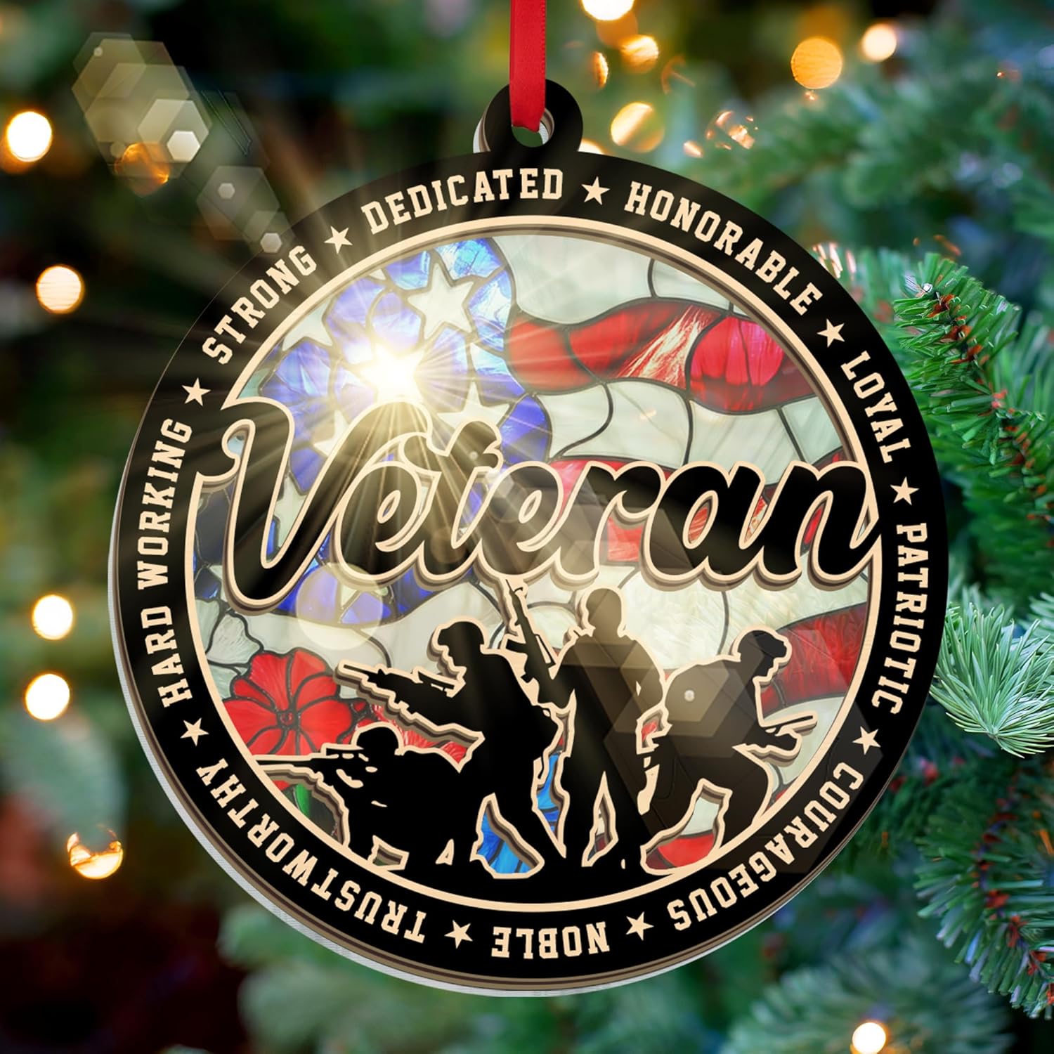 - VETERANS GIFTS FOR MEN WOMEN – Express gratitude with heartfelt patriotic Christmas ornaments that embody loyalty, dedication, and honor. This veteran ornament is treasured as christmas gifts and patriotic gifts for men, army veteran gifts for men, or navy veteran gifts for dad grandpa, offering a keepsake that reminds them their service is always remembered.