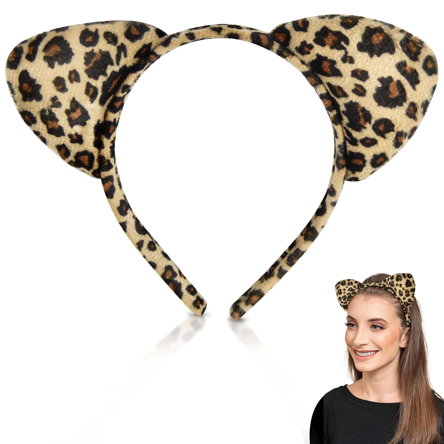 Leopard Ear Headband, Fuzzy Animal Headband for Women Adults, Cute Leopard Halloween Ears Costume Accessories for Halloween Christmas Cosplay Costume Party Favors Supplies