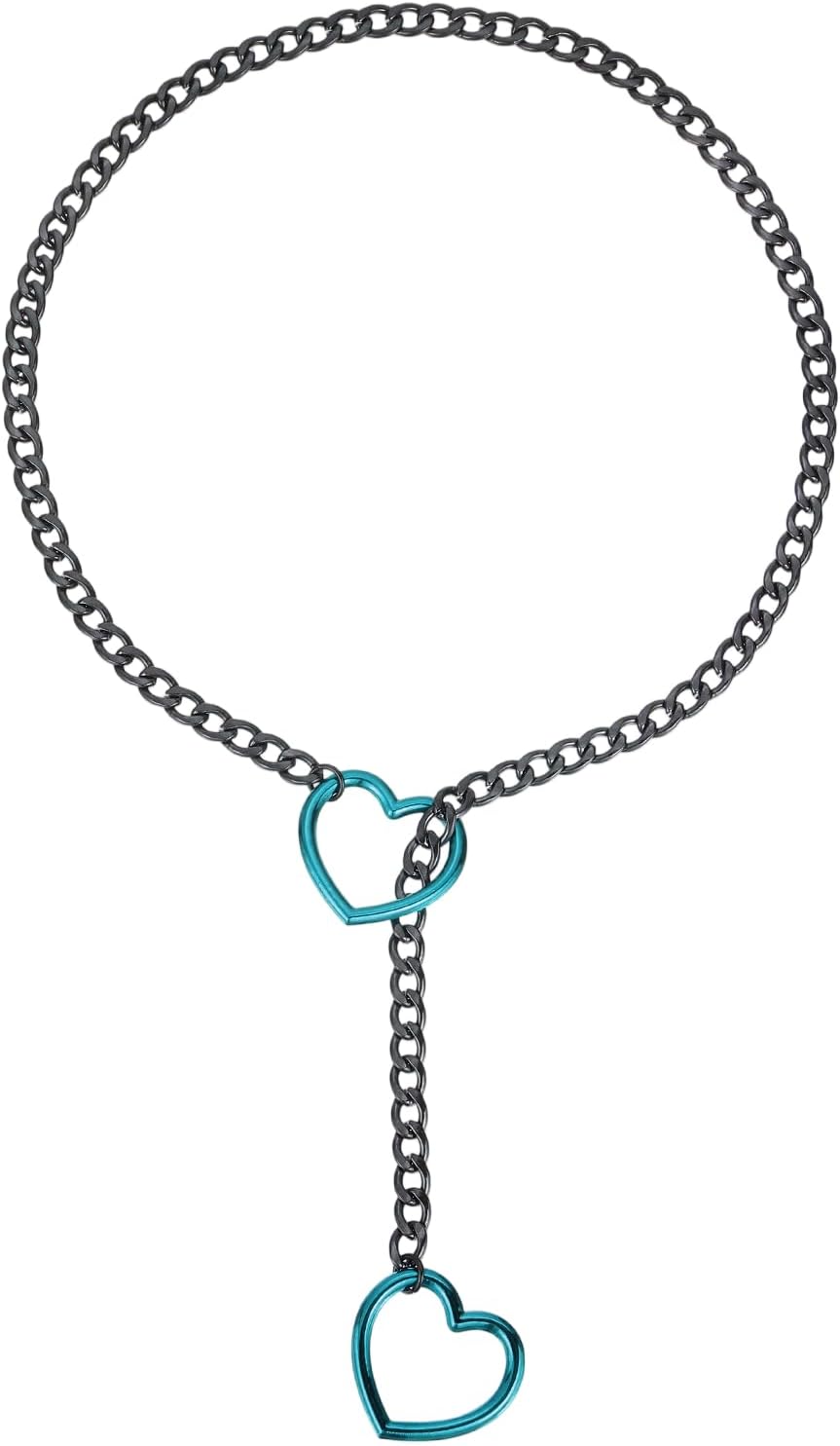 MECCANIXITY Slip Chain Necklace, Cuban Adjustable Y Necklace with Heart O Ring Stainless Steel Chain Chokers for Women Punk Gothic Jewelry