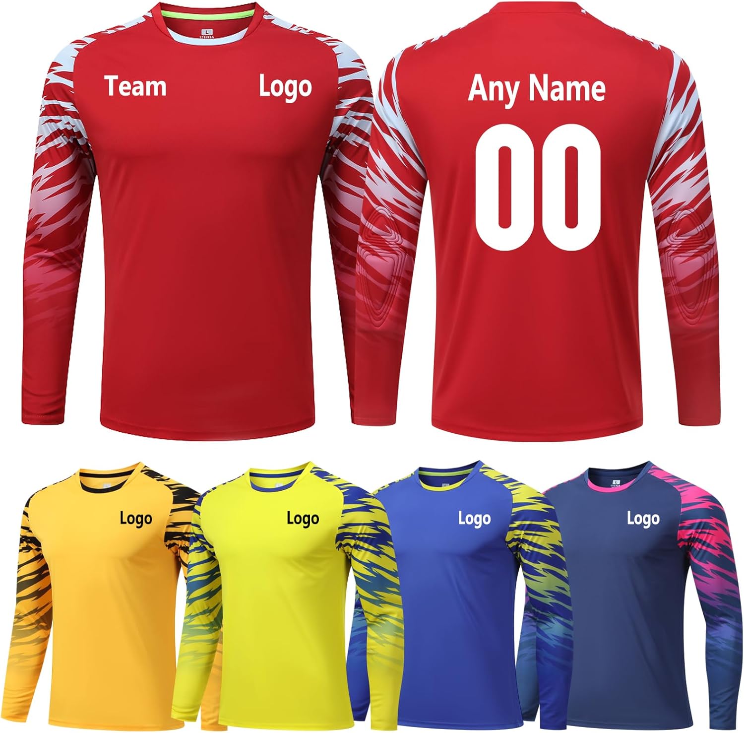 Customized Soccer Jerseys Long Sleeve Soccer Goalie Shirt, Padded Goalkeeper Jersey, Youth and Adult Sizes