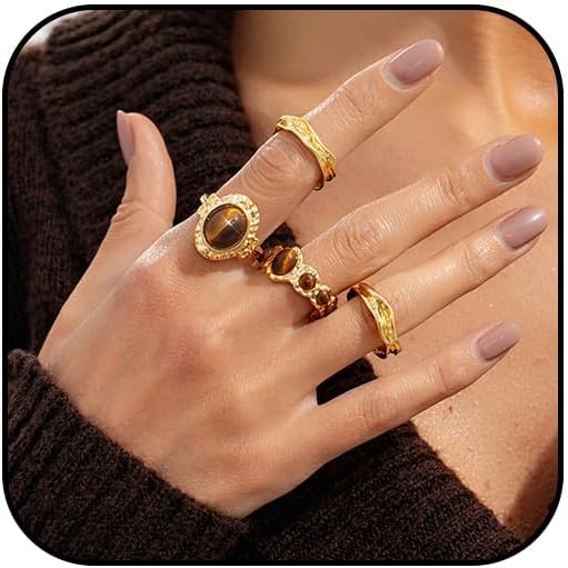 Vintage Boho Gold Rings for Women Chunky Unique Large Faux Gemstone Stone Stack Knuckle Statement Ring Stack Funky Open Bulky Jewelry Set Non Tarnish