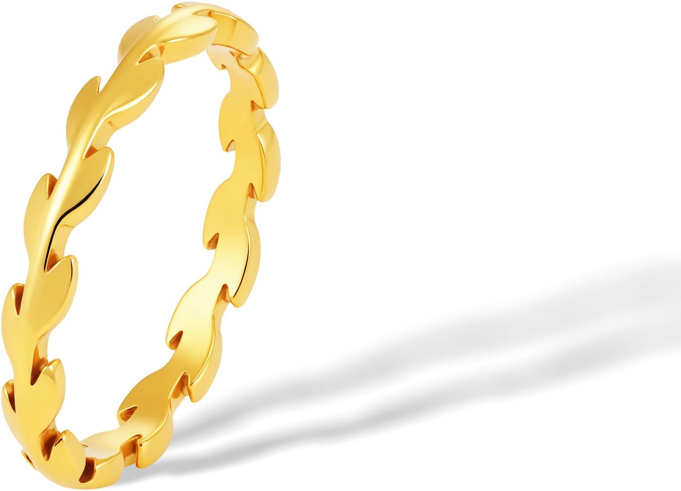 2mm Leaf Ring For Women,18K Gold Plated Titanium and Stainless Steel Stackable Leaves Ring Non Tarnish