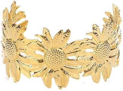 Chunky Flower Bracelet Dainty Gold Sunflower Cuff Bracelet Golden Open Bangle Silver Flower Cuffs Wide Floral Accessories Gift for Women Simple Minimalis Fashion Vintage Jewelry
