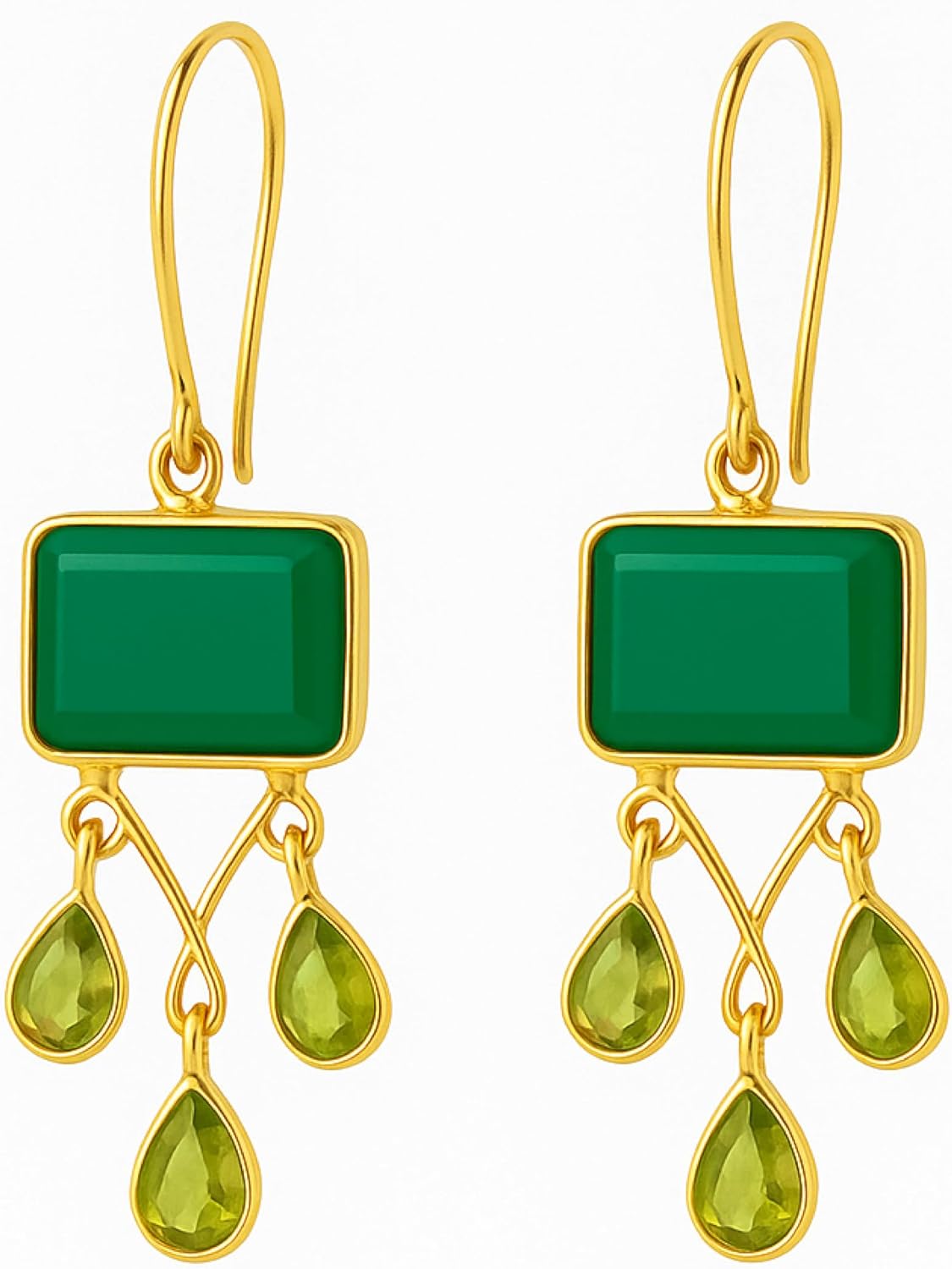 Green Onyx Peridot Gold Dangle Drop Earrings, Black Onyx Pyrite, 925 Sterling Silver, Handmade 18K Gold Plated Jewelry, Natural Gemstone Elegant Daily Wear Gift for Women and Girls