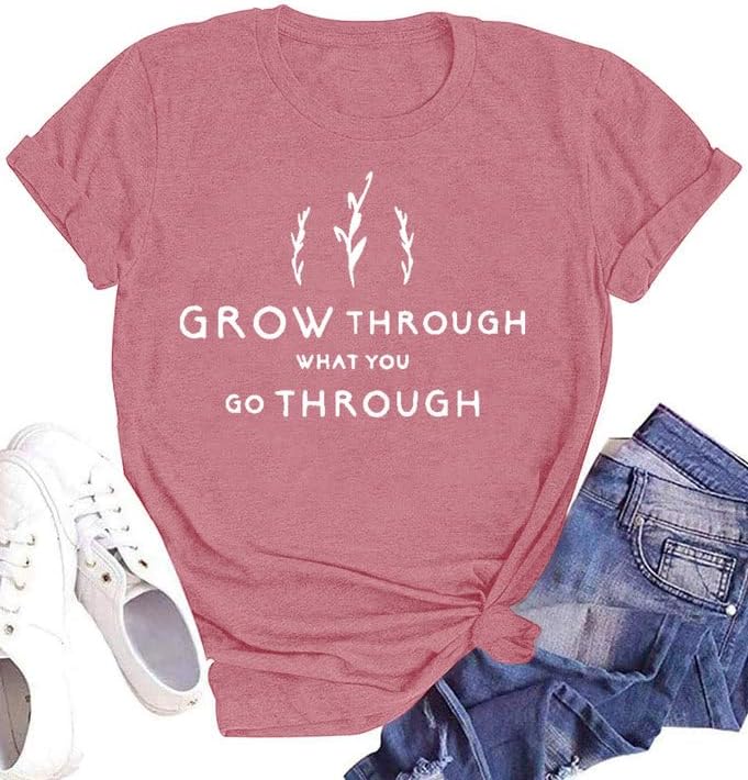 Inspirational Tshirts for Women Grow Through What You Go Through Shirt Motivational Tee Top