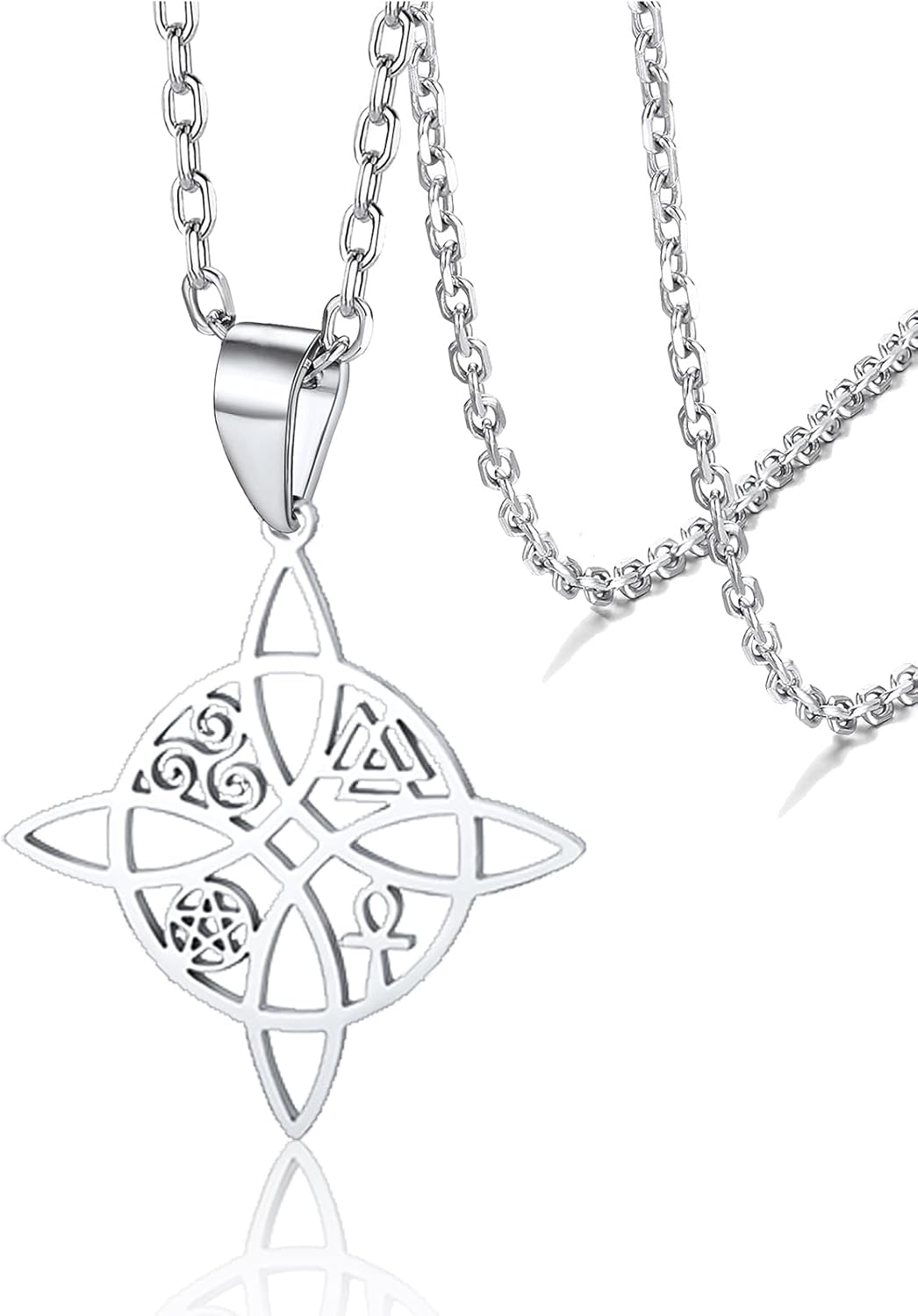 VASSAGO Witches Knot Necklace Stainless Steel Celtic Knot Pendant with Triquetra Trinity Nudo De Bruja Pagan Witch Jewelry Good Luck Gift