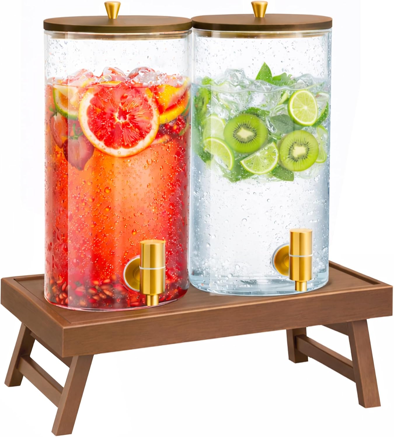 - 【Stylish 2-Jar Beverage Dispenser】Upgrade your drink service with this modern two-jar (1.5 gallon each) beverage dispenser designed for both everyday use and special occasions. Featuring crystal-clear glass containers and a sleek metal frame, it creates an elevated self-serve station for your kitchen counter, patio, buffet table, or party setup. Perfect for lemonade, iced tea, infused water, sangria, cold brew, or fruit punch, this dispenser blends elegant presentation with reliable performance.