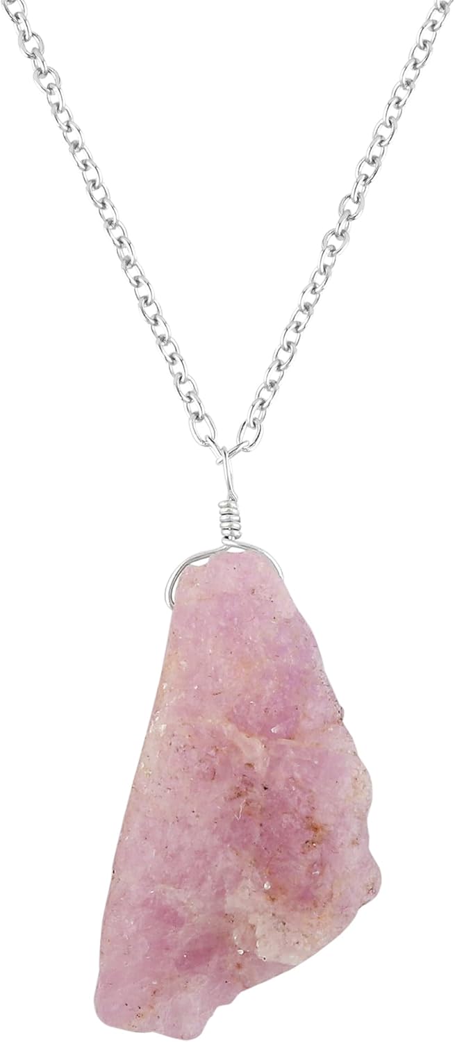 Raw Gemstone Pendant Necklace for Women |Natural Healing Crystal Rough Pendant 15–25 Carat | 8–14 mm Stone |Silver Plated Chain 16+2 Inch Adjustable | Gift Jewelry