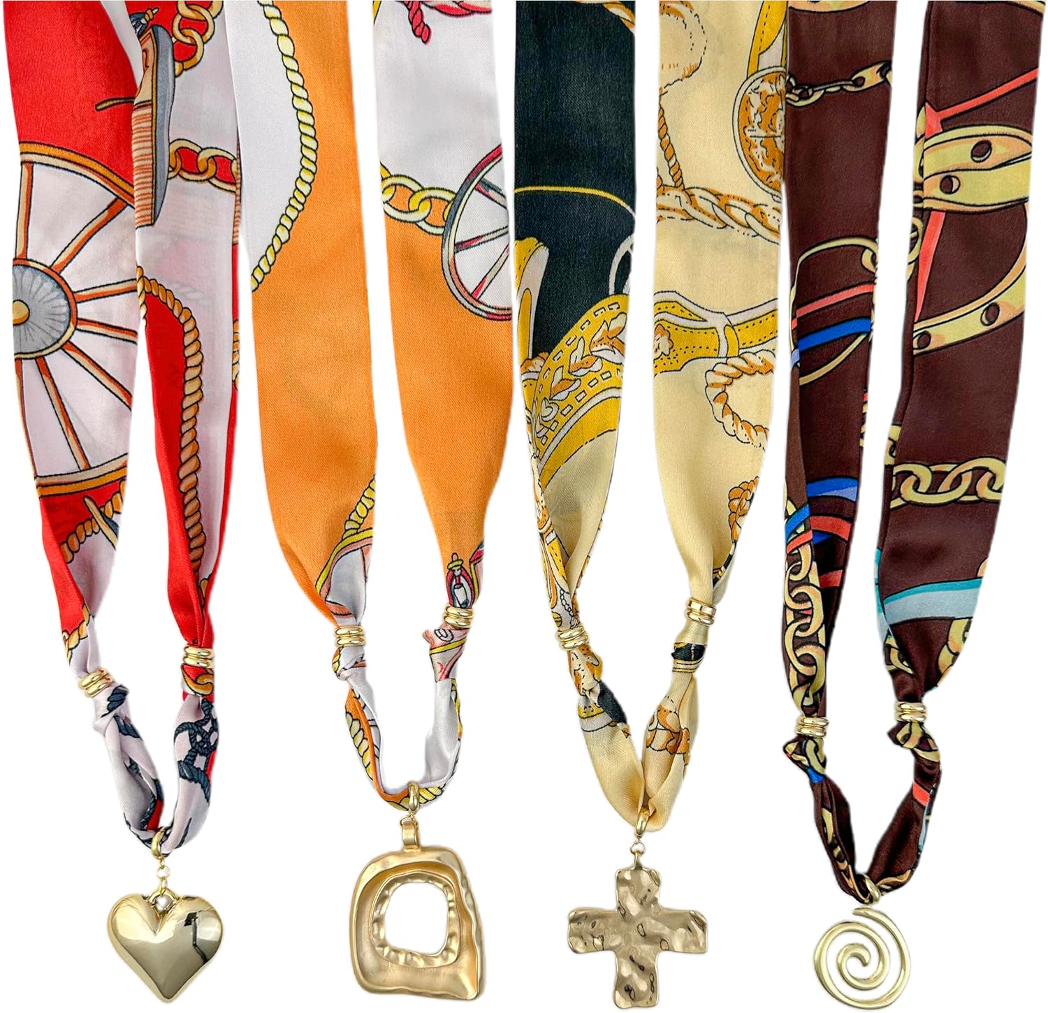 Scarf Necklace with Chunky Charms 4 Pack, Silk Bandana Necklace for Women, Adjustable Tie Statement Choker Jewelry, Stylish Gift for Birthday or Special Occasions