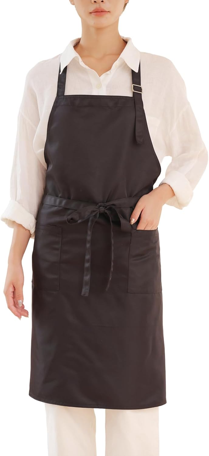 Adjustable Bib Apron Chef Aprons for Men Women Kitchen Cooking Restaurant BBQ Painting Crafting with 2 Pockets
