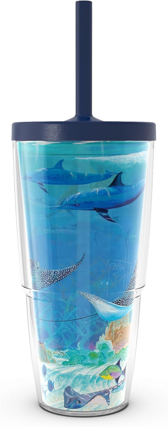 Tervis Guy Harvey - Ocean Scene Made in USA Double Walled Insulated Tumbler Travel Cup Keeps Drinks Cold & Hot, 24oz with Straw Lid, Classic