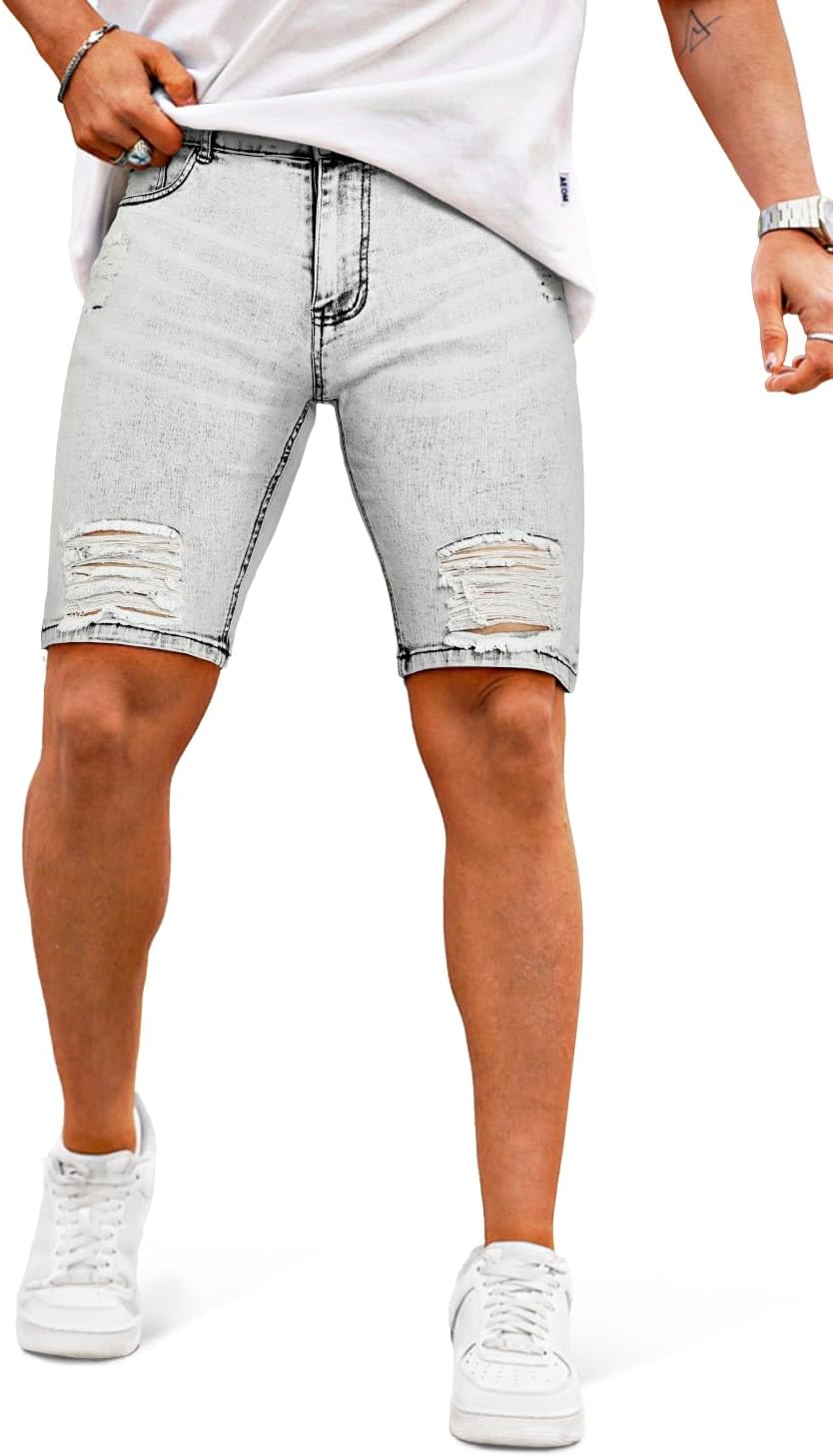 GINGTTO Men's Jean Shorts Ripped Slim Fit Stretch Denim Shorts
