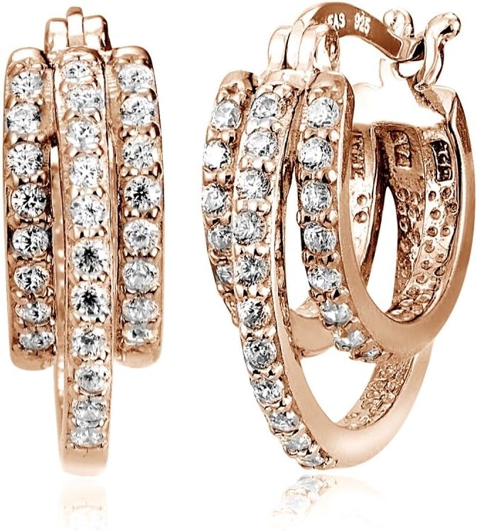 Sterling Silver Cubic Zirconia Triple Row Fashion Hoop Earrings
