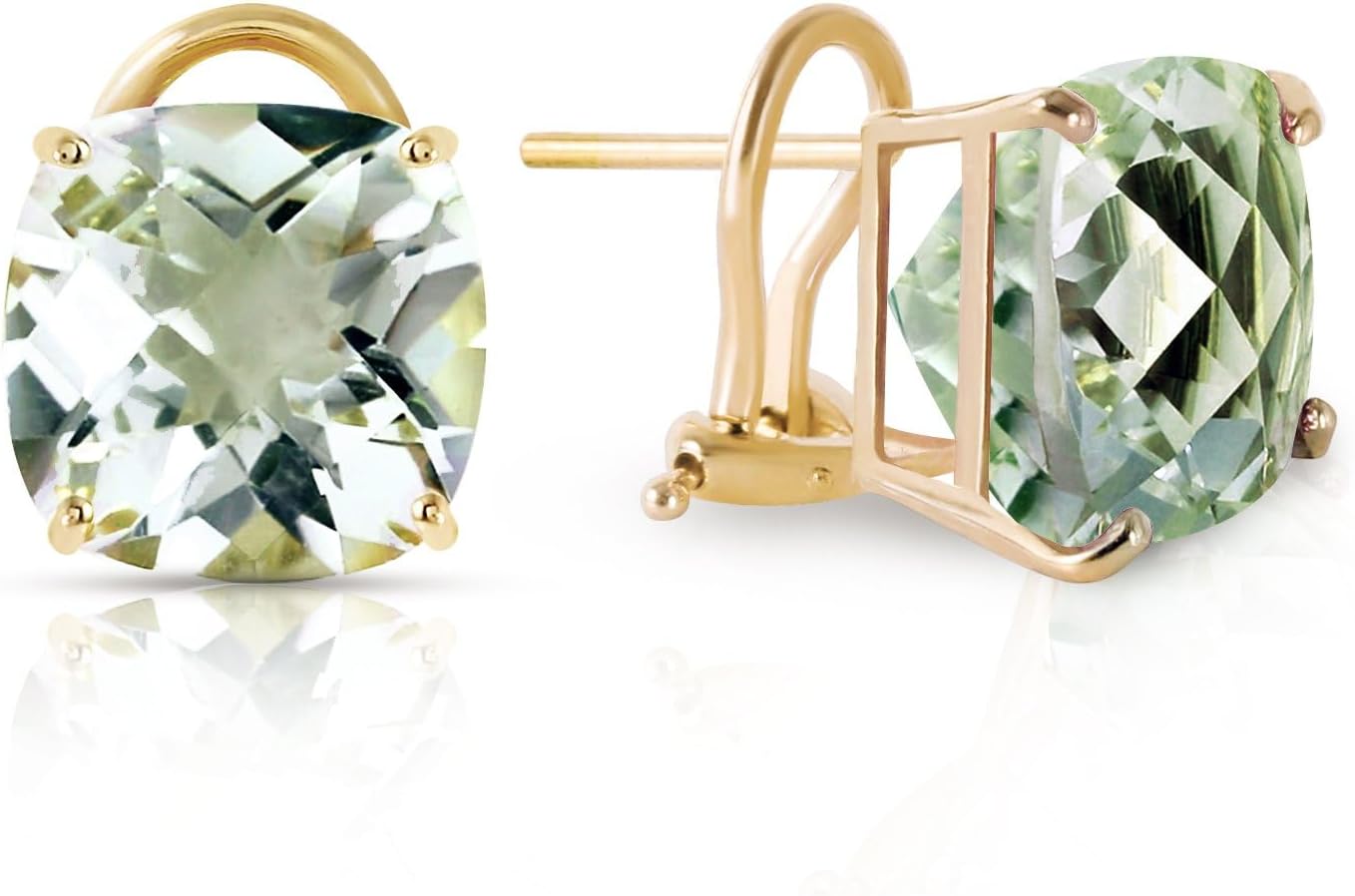 7.2 Carat 14k Solid Gold French Clips Earrings Green Amethyst