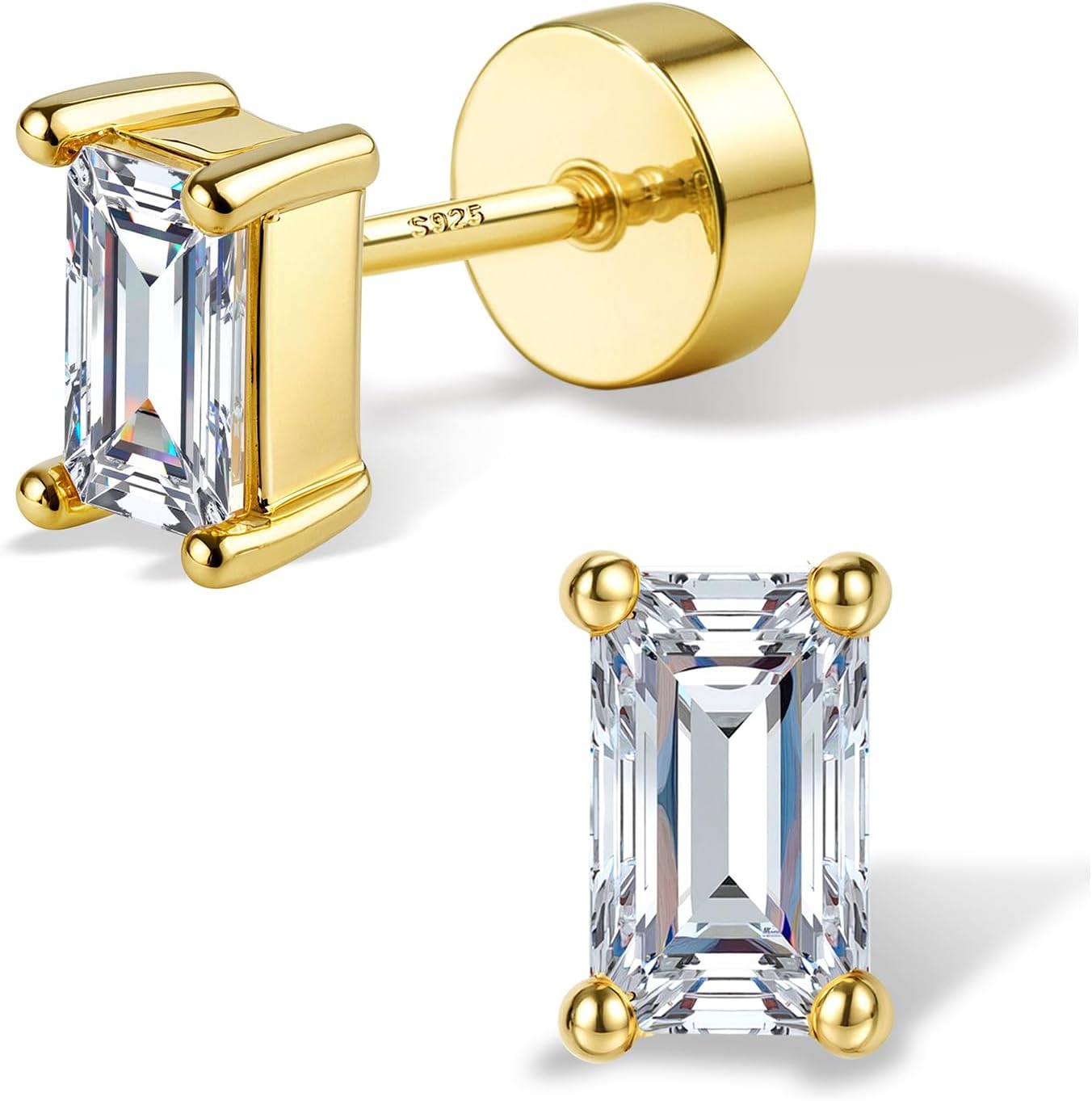 Moissanite Earrings Studs Flat Back Earrings Hypoallergenic - 14K Gold Plated Sterling Silver Earring for Women Men Small Dainty Cartilage Helix Piercing Jewelry D Color VVS1