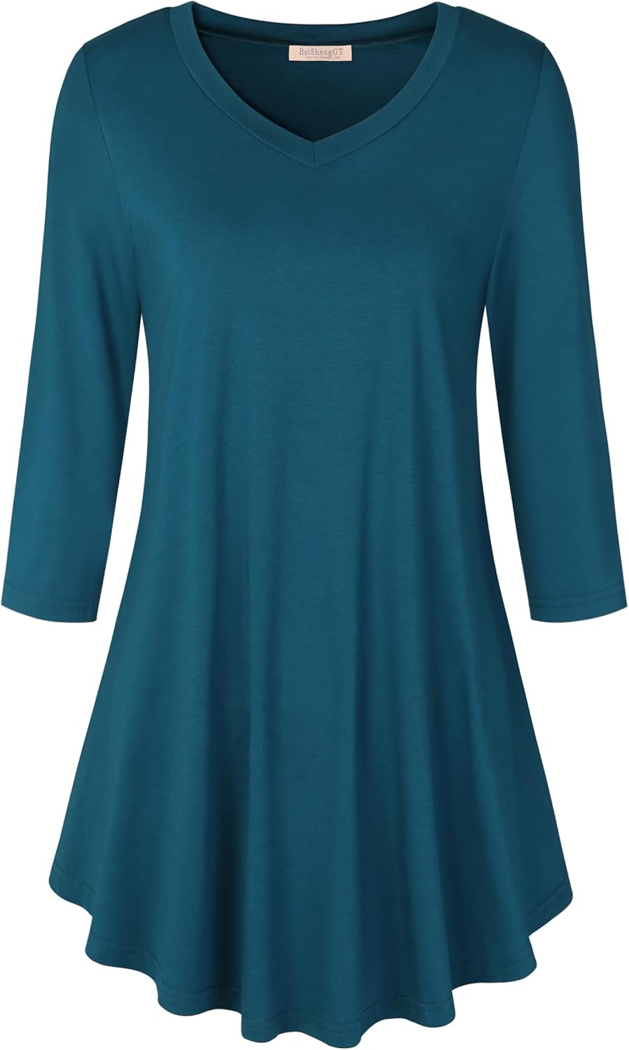 BAISHENGGT Women's V Neck 3/4 Sleeve Tunic Tops for Leggings Casual Dressy T-Shirts Blouses