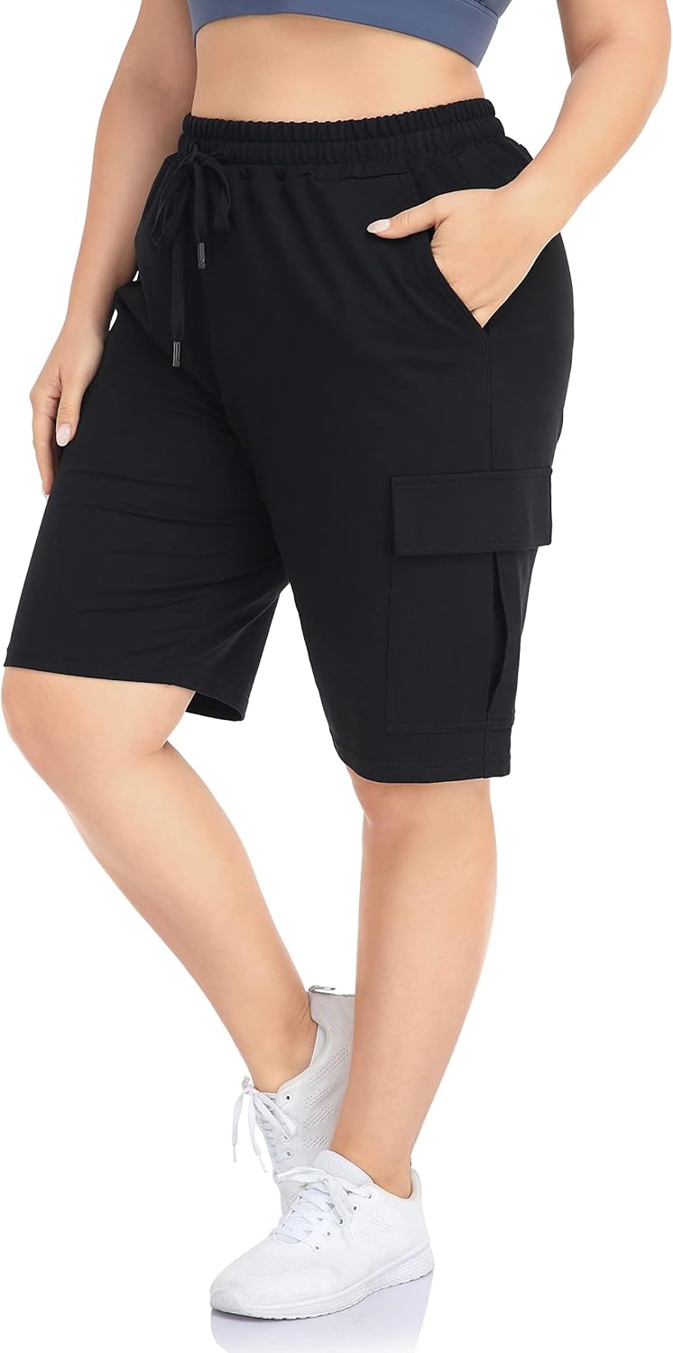 ZERDOCEAN Women's Plus Size Cargo Sweat Shorts Active Summer Workout Walking Athletic Shorts with Pockets