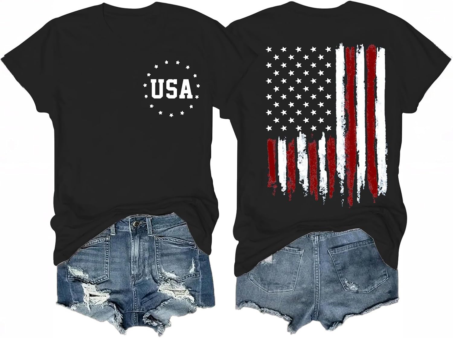 Women's 4th of July Outfits USA Shirt Memorial Day Red White and Blue Patriotic Shirts American Flag Graphic Tops