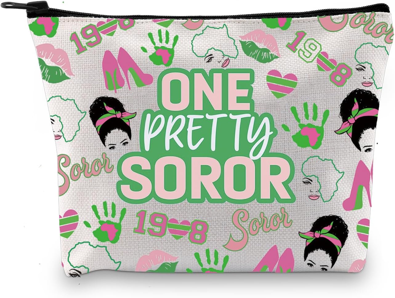 GJTIM Sorority Makeup Bag Paraphernalia Gift Pink and Green Black Greek Sorority Gift One Prettty Soror Zipper Pouch for Soror Black Womens (One Pretty Bag)