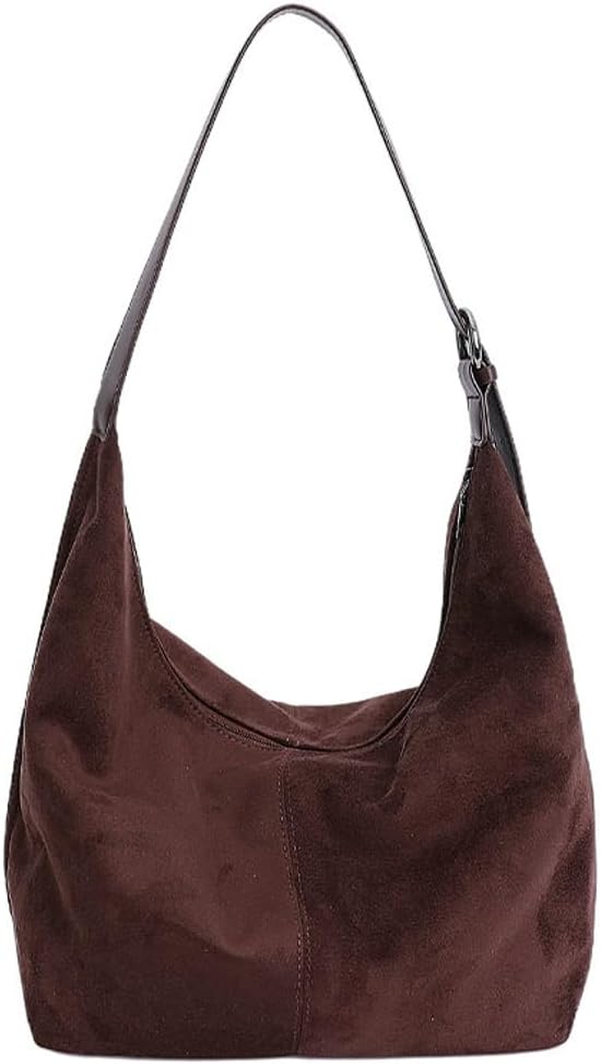 Suede PU Dumpling Bag Vintage Casual Convertible Carry Spacious Crossbody Handbag