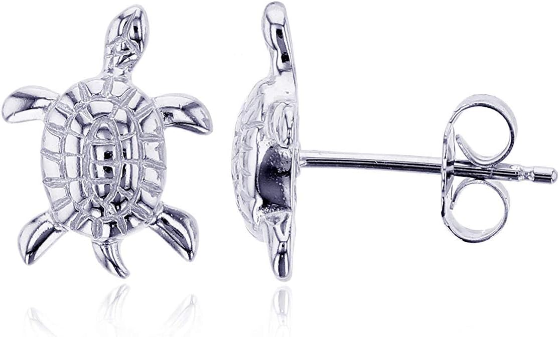 Solid 925 Sterling Silver Polished Sea Turtle Stud Earrings for Women | 12.5mm Gold Plated Hypoallergenic Studs
