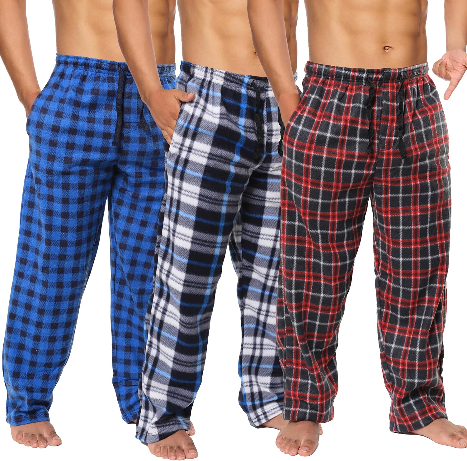 Active Club 3 Pack Mens Fleece Pajama Pants - Plaid Lounge Bottoms with Pockets (S- 3X)