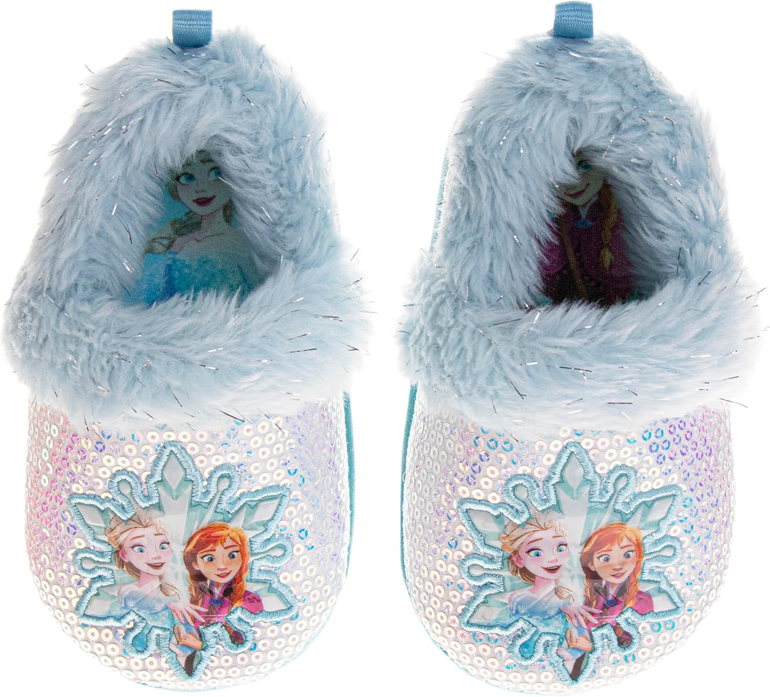Disney Frozen Elsa and Anna Girls Slippers - Plush Non-Slip Comfy Fluffy Lightweight Warm Comfort Soft Aline Indoor House Slippers (Toddler/Little Kid)