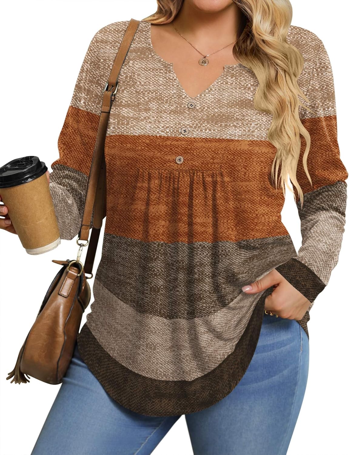 IN'VOLAND Womens Plus Size Long Sleeve Shirts Fall Tunic Top V-neck T-Shirt Button Up Dressy Casual Blouse 1X-5X