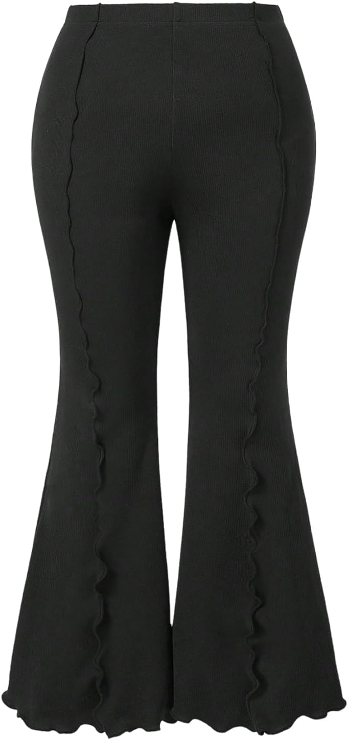 SOLY HUX Women's Plus Size Flare Pants Elastic Waist Ruffle Bell Bottom Pants Long Trousers