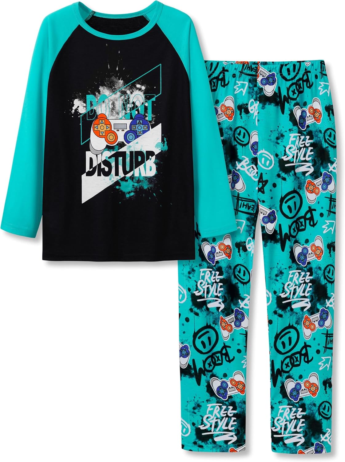 Topgal Boys Girls Pajamas Long Sleeve Sleepwear Trendy Navy Face Tie Dye Checkered 2-Piece PJs Set Comfy Big Kid Size 6-18