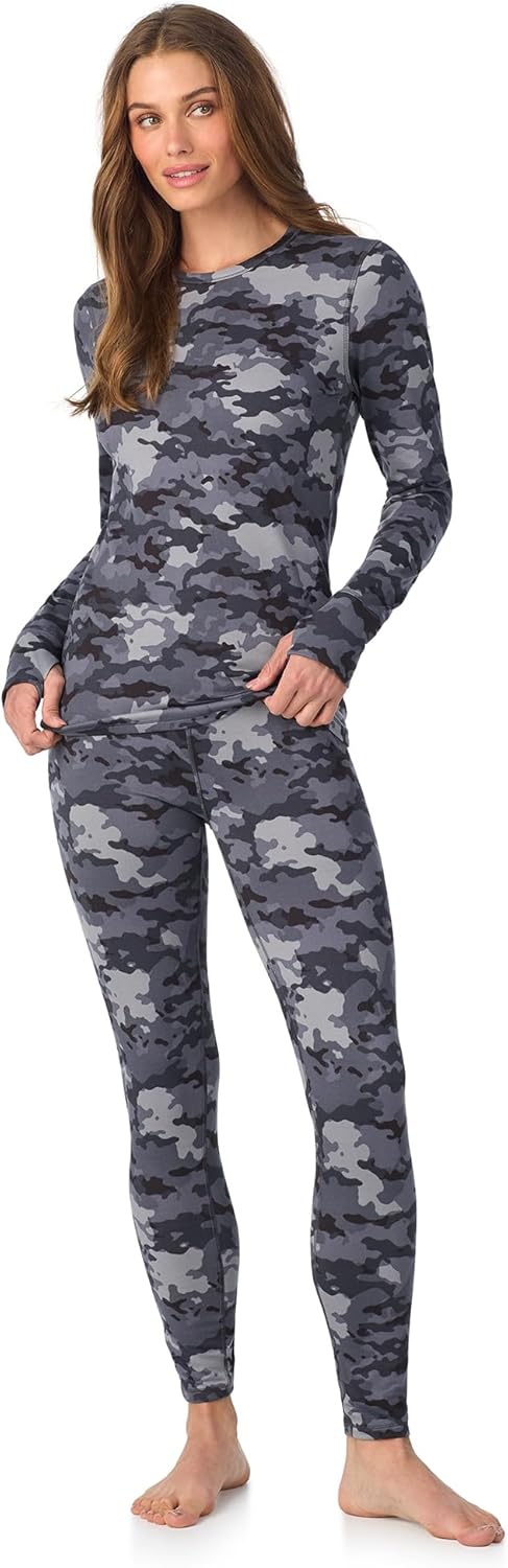 Cuddl Duds Womens Heavyweight Cold Weather Fleece Lined Thermal Set – Long Sleeve Top & Leggings - Winter Lounge Sets