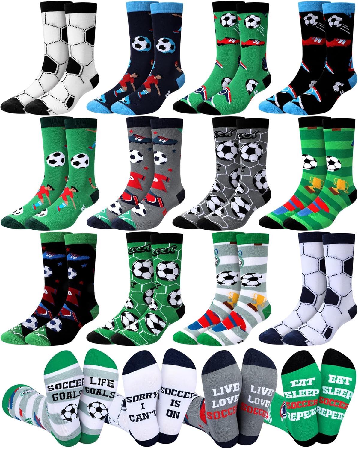 Haysandy 12 Pairs Novelty Soccer Socks for Men Funny Cotton Crew Socks Sports Gifts for Soccer Lovers Fans Coach Players Team Party Favors