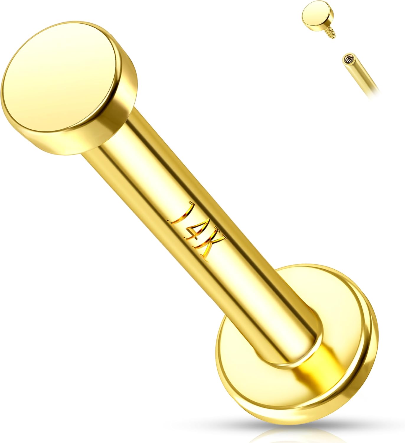 Melighting 14K Solid Gold Flat Back Cartilage Earring 16G Helix Piercing Jewelry Internally Threaded Labret 8mm