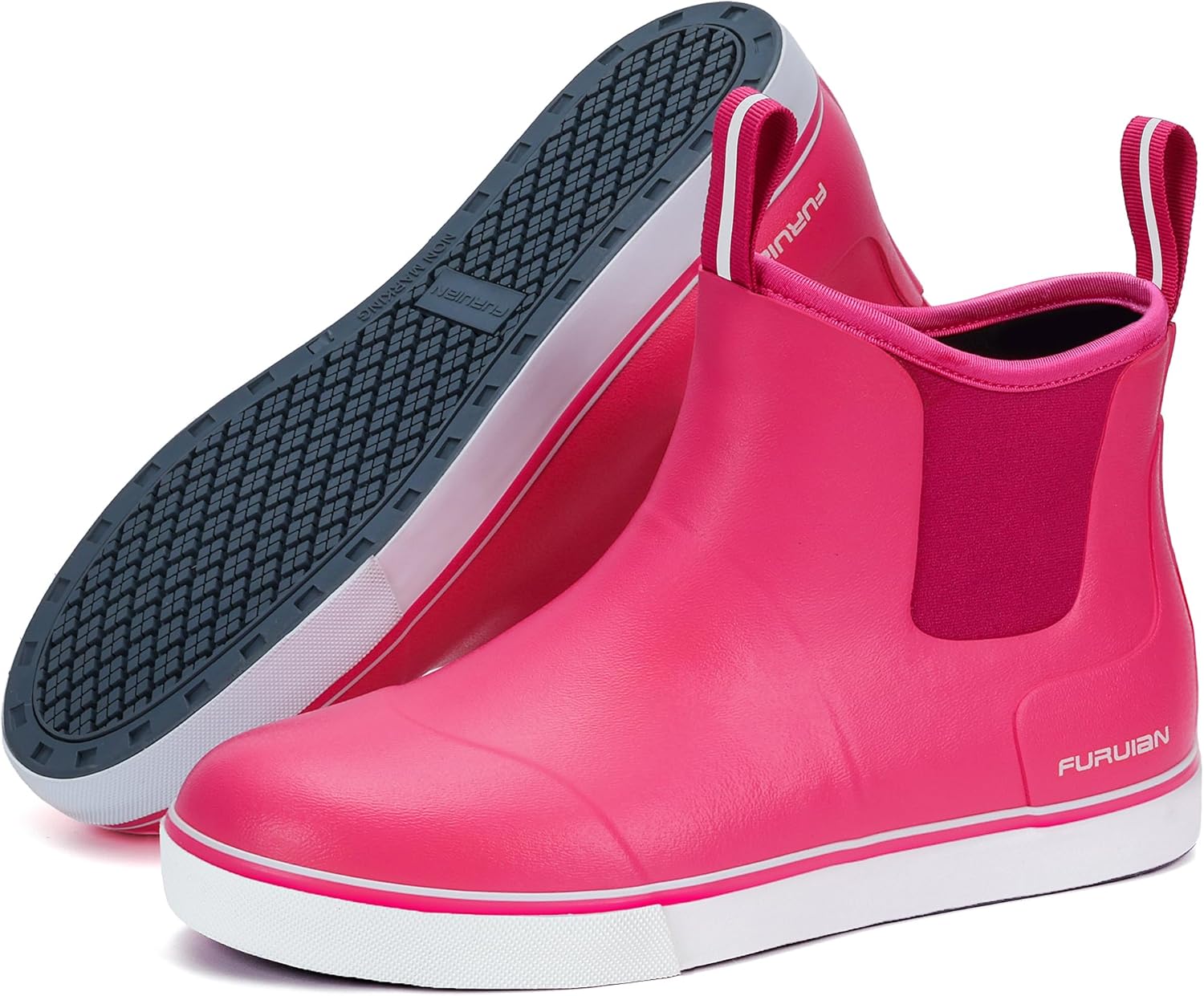 Furuian Women's Deck Boots Ankle Rain Boots Fishing Boots Rubber Waterproof Slip-Resistant Outdoor Work Shoes