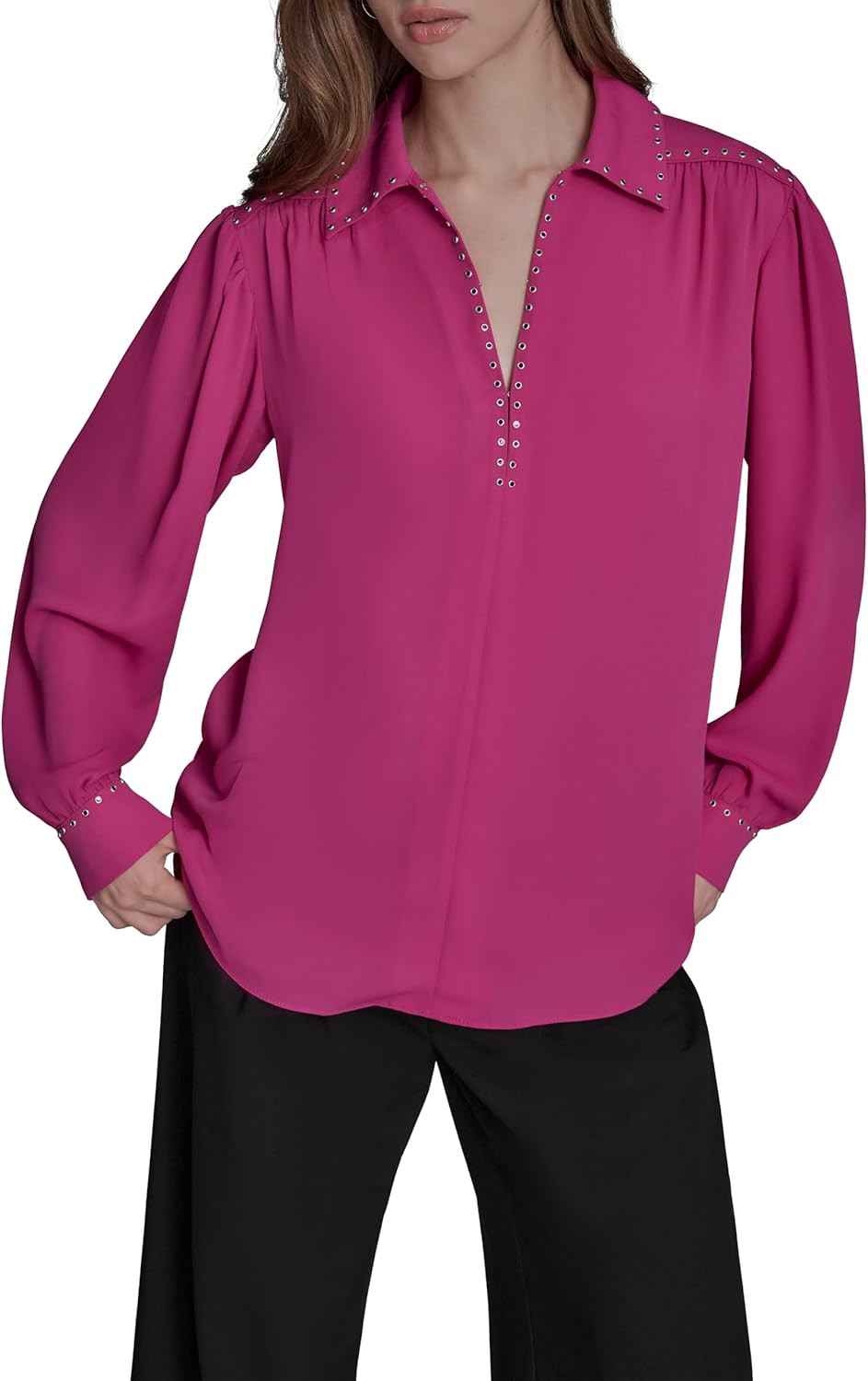 BCBG Womens Long Sleeve Blouse with Hotfix Detail