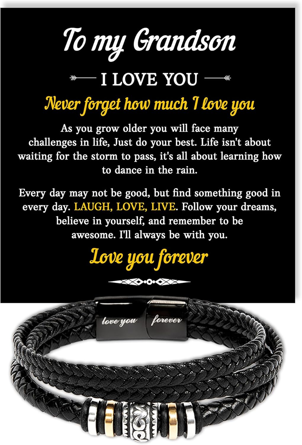 VIRAGIL To My Grandson Leather Bracelet – Meaningful Gift from Grandma or Grandpa, Inspirational Engraved Message Wristband for Birthday, Christmas, Graduation, or Just Because