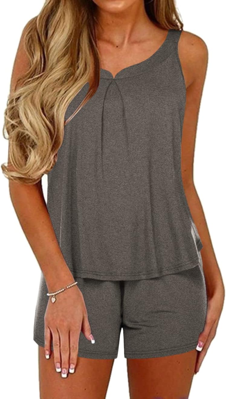 Ekouaer Pajamas Sets for Women Tank Tops with Shorts Sleepwear Nightwear Pj Set S-XXXL