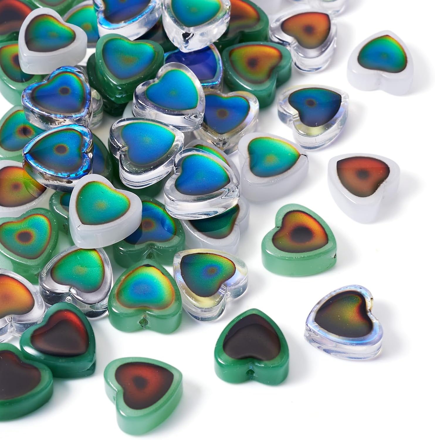 - Color: 50 PCS Heart Glass Beads