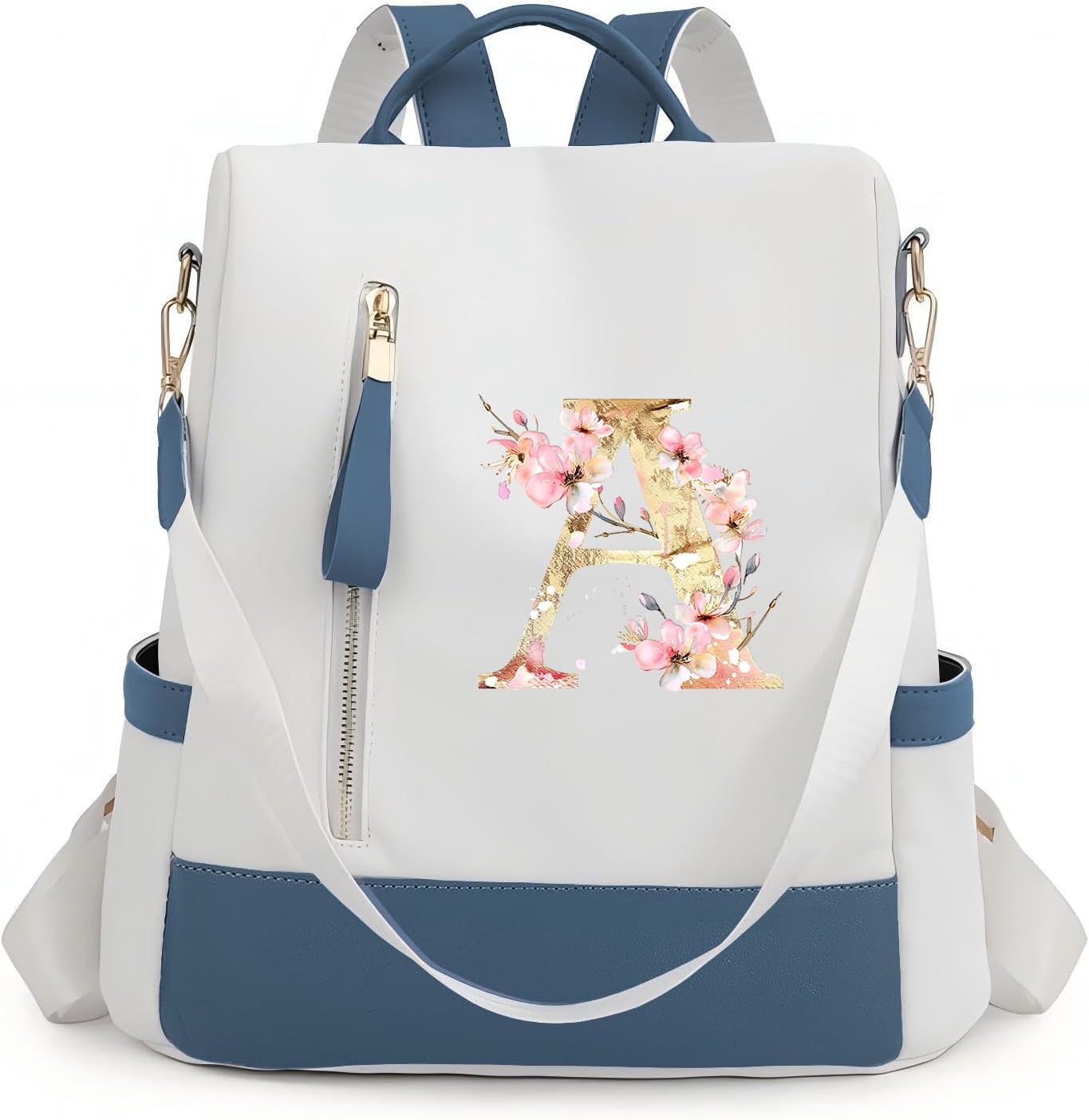 Backpack for Women & Men 11 inches Laptop Backpack with Initials Backpack Purse with Anti-Theft Pocket Tote Shoulder Bag (A)