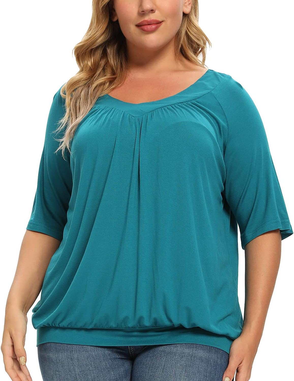 andy & natalie Women's Plus Size Tops Pleated V Neck Loose Baggy Blouse T Shirts