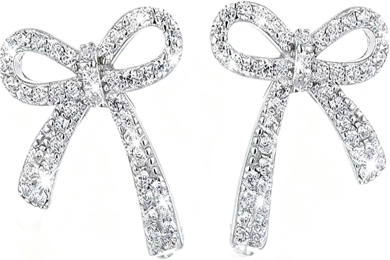 Silver Bow Earrings for Women Rhinestone Bow Earrings Sparkling Bowknot Stud Earrings for Birthday Party Jewelry