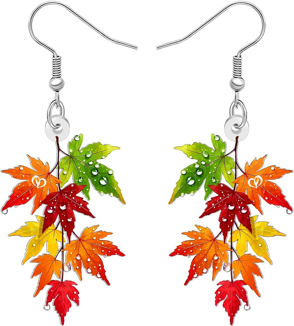 Acrylic Cute Thanksgiving Maple Leaf Dangle Earrings Fall Gifts for Women, Colorful Leaves Earrings with Water Droplets Design, Autumn Jewelry for Nature Lovers