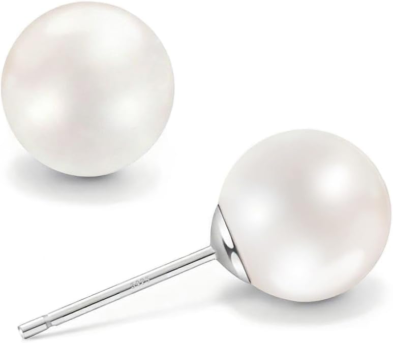925 Sterling Silver Stud Earring Round Pearl Stud Earrings Set Jewelry for Women, 8MM/10MM/12MM