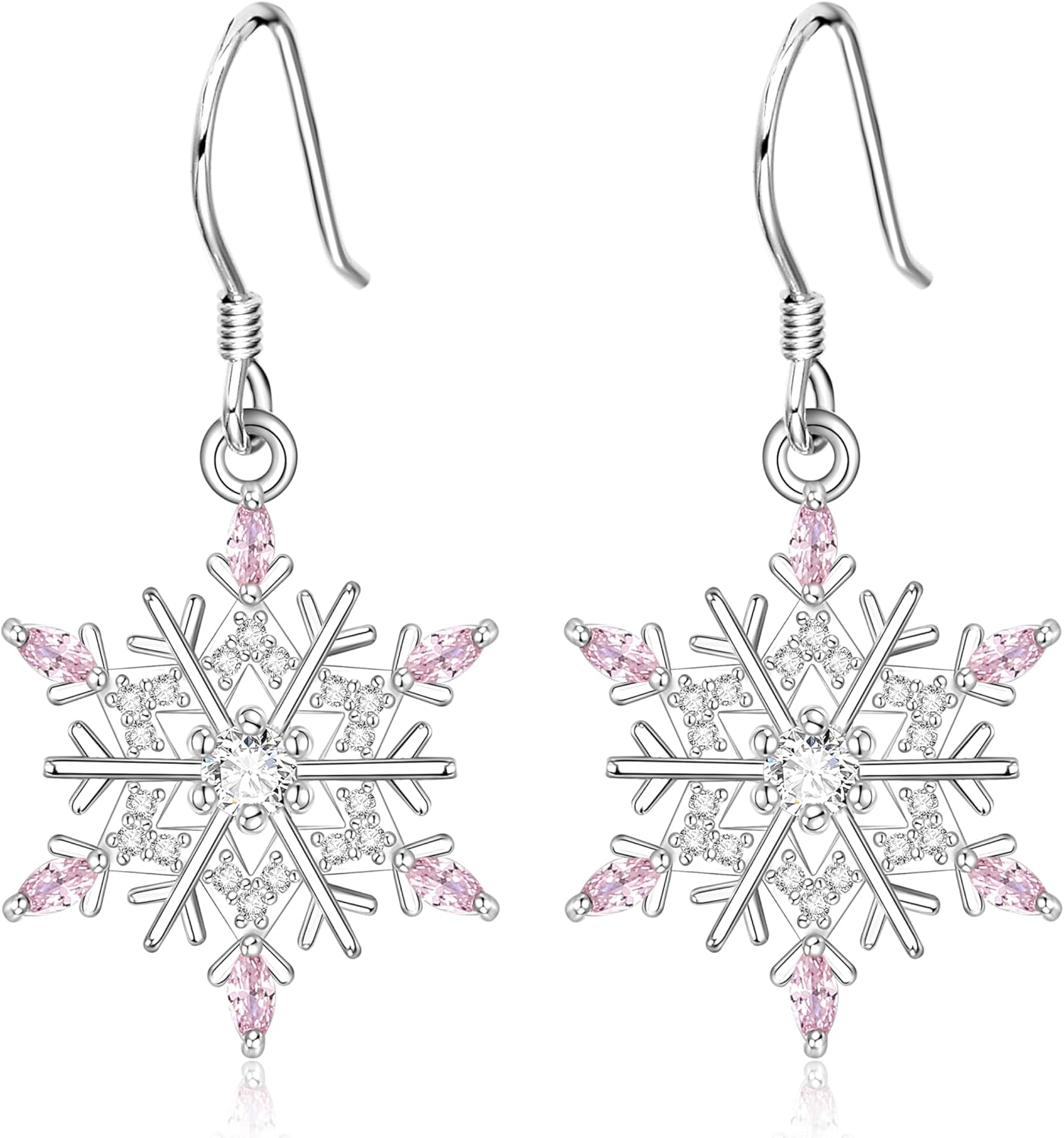 EVER FAITH Winter Snowflake Earrings 925 Sterling Silver Cubic Zirconia Holiday Dainty Snowflakes Hook Dangle Earring Christmas Jewelry Gifts for Women