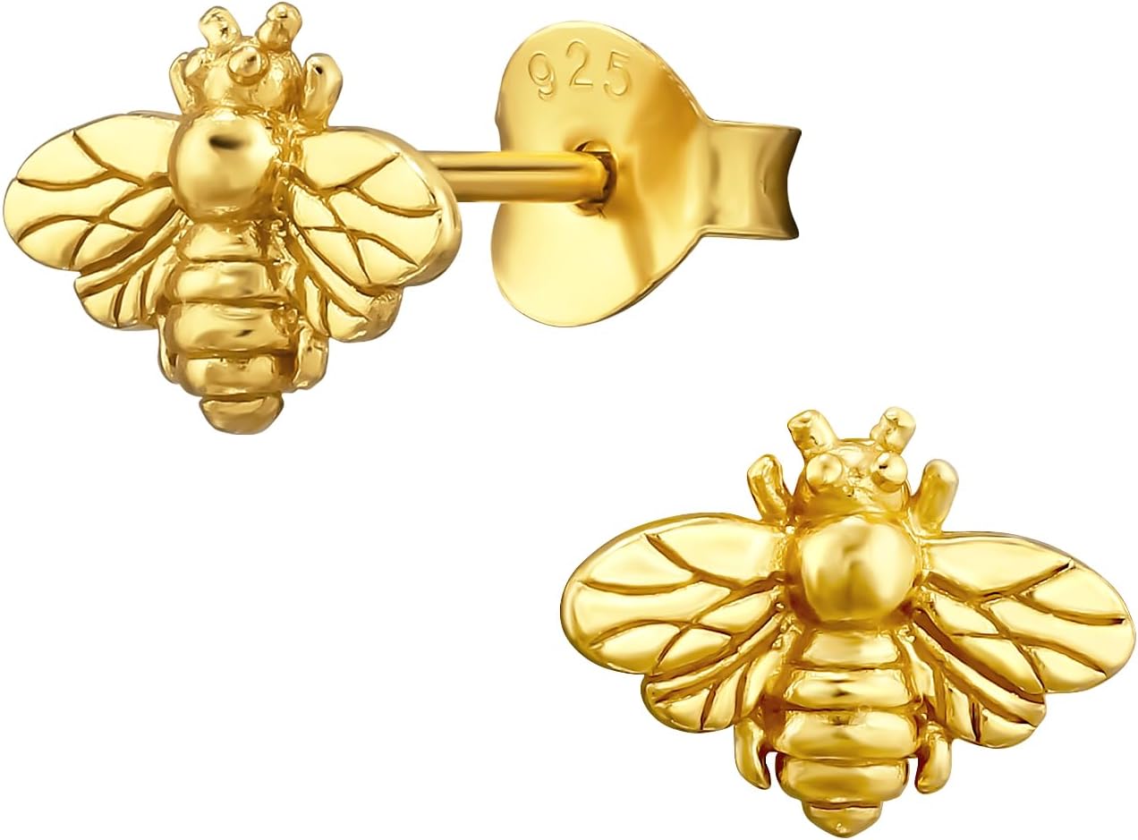 925 Sterling Silver Honey Bee Stud Earrings, Sold as a Pair