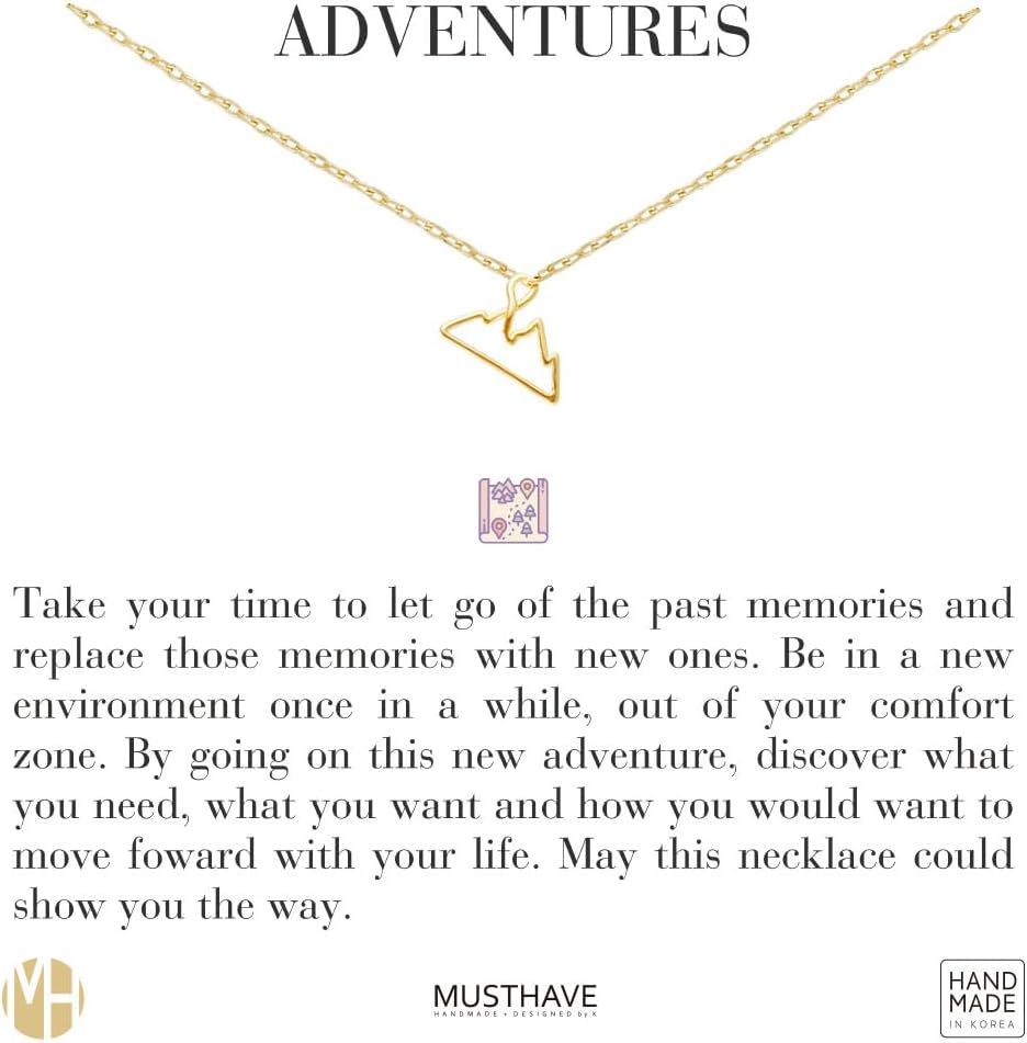 Outline Mountain Necklace, MUSTHAVE 18K Gold Plated Simple Line Mountain Necklace, Minimalist Hiking Jewelry, Adventure Inspired Pendant, Dainty Nature Necklace for Women, Adventure, 16+2" Chain, Message Card, Birthday (Yellow Gold)