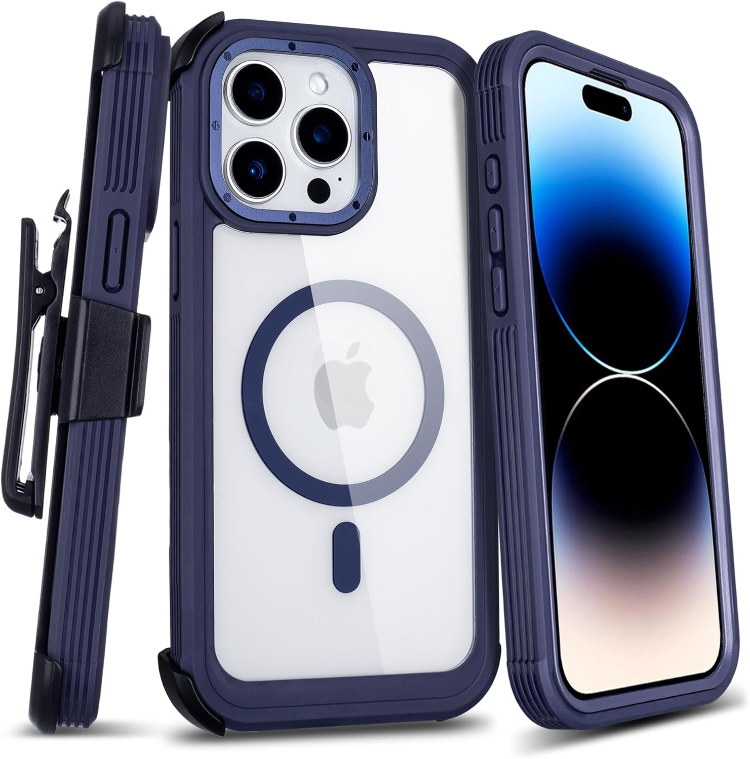 Defender for Clear iPhone 14 Pro Max Case with Belt Clip Holster, Compatible with MagSafe, Anti-Yellowing, Full-Body Phone Cover for iPhone 14 Pro Max Case (Clear & Blue)