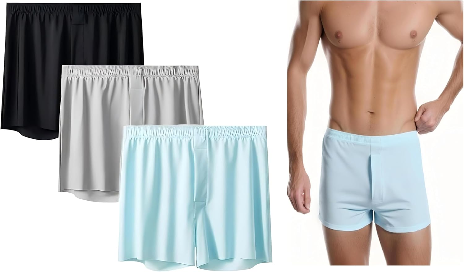 GOLD XIONG PADISHAH Men's Ice Silk brief Satin Boxer Shorts Silk Feeling Underwear with Button Fly Silky Boxers for Men