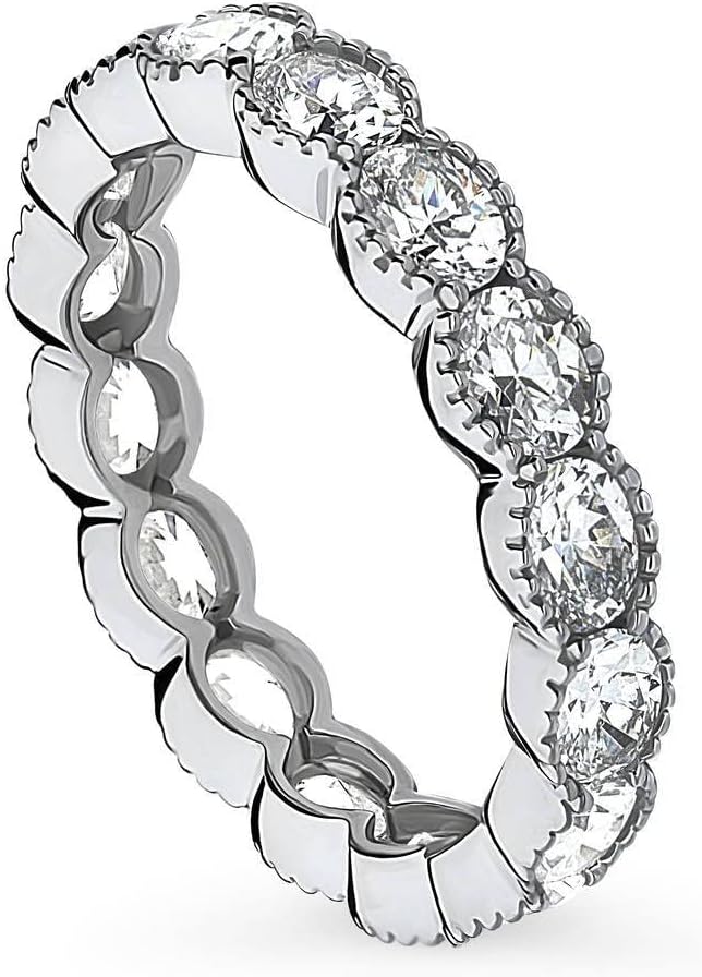 BERRICLE Sterling Silver East-West Wedding Rings Milgrain Bezel Set Oval Cut Cubic Zirconia CZ Milgrain Anniversary Eternity Ring for Women, Rhodium Plated