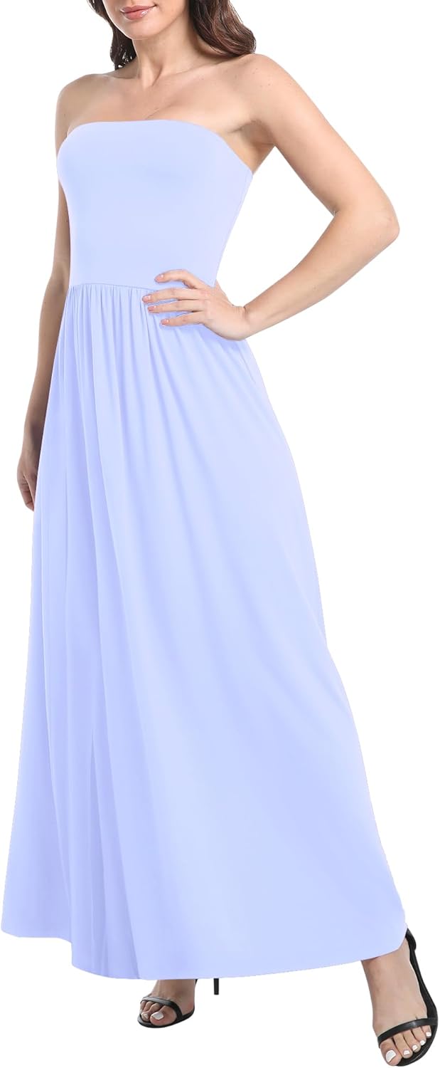 Urban CoCo Summer Strapless Ruched Maxi Dress for Women Sleeveless A Line Flowy Party Wedding Guest Long Dresses